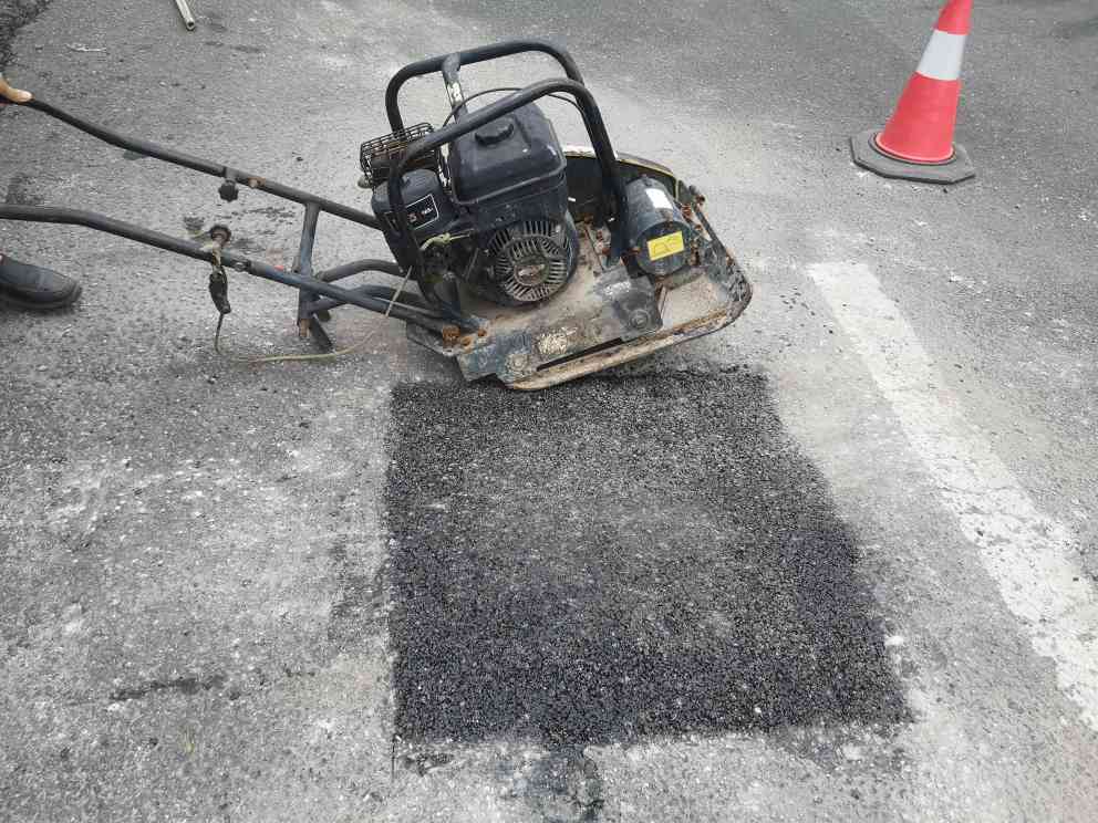 攤鋪完成后,需要用壓路機或平板震動夯對瀝青冷補料進行壓實。在壓實的過程中,需要視情況選擇用機械壓實或者人工壓實。深度超過5cm的坑槽,一定要進行分層壓實(一般每5cm壓實后再進行下一層)。最終壓實后的坑槽部分,應比原有路面高出0.5-1cm左右。