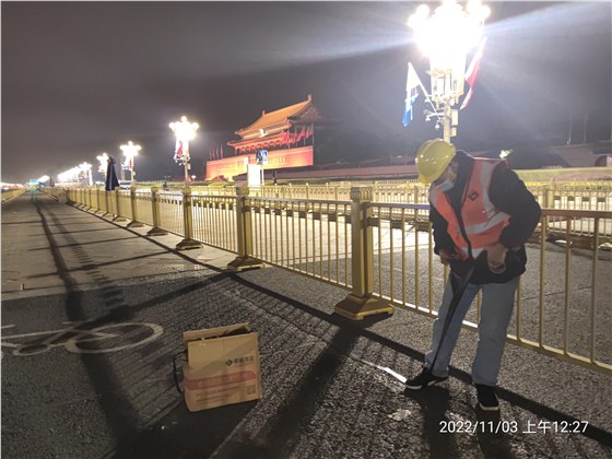 2022年11月3日晚,嘉格公路貼縫帶被用于北京長安街的公路裂縫修補工程中。嘉格的護路者們穿著橙色工作服,在寂靜的夜晚來到施工地。一切都進行的很順利,嘉格公路貼縫帶柔軟易彎,可隨裂縫形態(tài)進行彎曲,盡管裂縫走向蜿蜒崎嶇,也難不倒靈活的嘉格貼縫帶。揭開下膜,便可粘貼于路面裂縫之上,用腳踩實即可。養(yǎng)護工人都贊嘆,沒想到嘉格貼縫帶這么好用,短短幾個小時,便完成了整條街的貼縫施工。