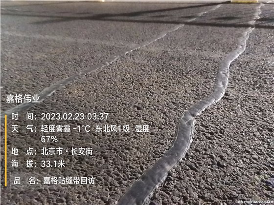其實平時經常聽說,哪家哪家的貼縫帶不好用,一個冬季后出現(xiàn)不良現(xiàn)象的比比皆是....但嘉格公路貼縫,卻帶能夠挺住一個冬季的風吹雨打,冰雪侵蝕,依舊那樣牢固無損。要知道今年北京的冬季氣溫可至零下十多度。北京嘉格偉業(yè)屬于貼縫帶行標起草單位之一,材料各項指標均符合行標規(guī)定要求,其具有很強的粘結性,能夠牢固的粘貼于道路裂縫表面,能有效地阻止水分滲透進入道路的內部結構;其高低溫性能穩(wěn)定,可針對環(huán)境氣候進行特殊定制,因此能夠有效抵御嚴寒風霜。