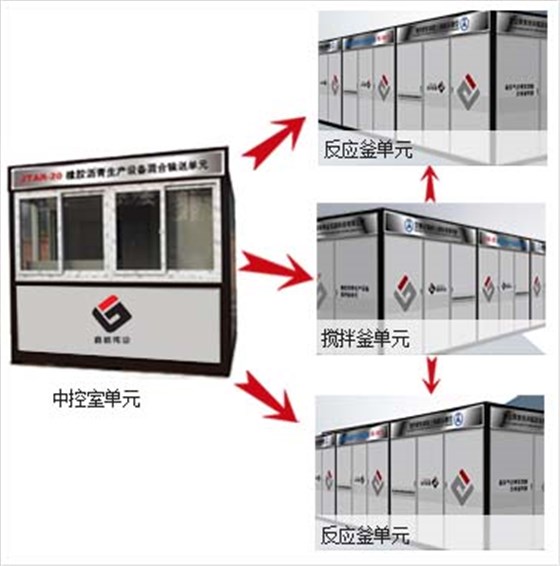 JTAR系列橡膠瀝青生產設備采用集裝箱式模塊化設計,標準配置為四個單元: