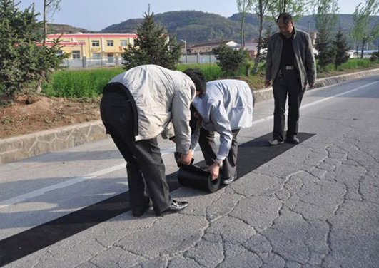 應(yīng)用場景一方式下嘉格網(wǎng)裂貼效果:經(jīng)過一段時間的行車碾壓之后,嘉格網(wǎng)裂貼會逐漸嵌入到裂縫的縫隙中,使松散、龜裂的裂縫重新連接在一起,表面的皮膚膜會逐漸碎末化與路面融為一體,應(yīng)用場景一方式下,路面溫度越高,效果越明顯。