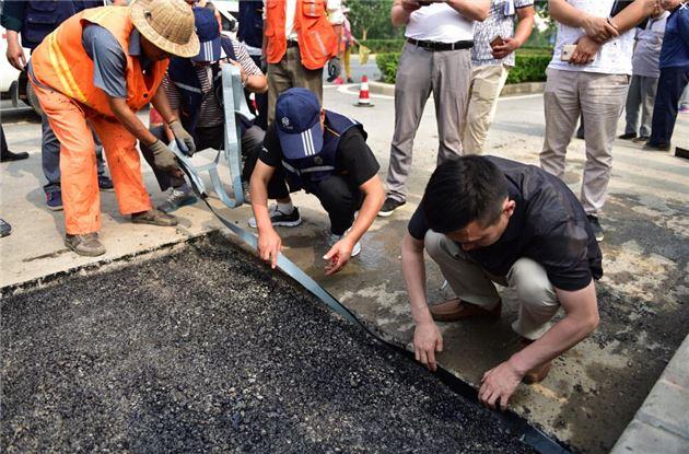 1、采用粘結(jié)力強(qiáng)的黏層油對(duì)地面處理,同時(shí)用抗裂貼對(duì)坑槽底部裂縫進(jìn)行處理