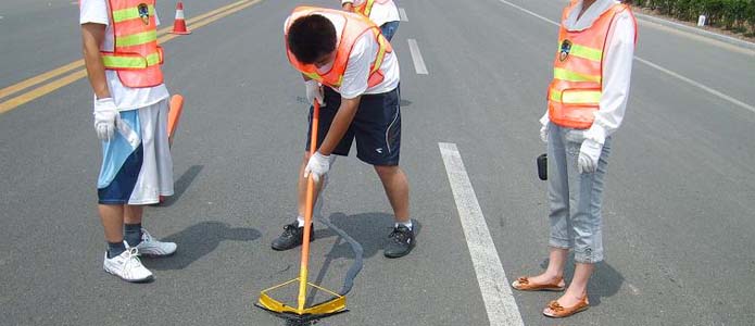 裂縫是瀝青路面主要病害之一,采用各種技術(shù)手段封閉路面裂縫,防止水滲入路面結(jié)構(gòu)內(nèi)部,被國(guó)際上廣泛認(rèn)為是減緩路面病害出現(xiàn)、延長(zhǎng)路面使用壽命的有效手段。封縫技術(shù)作為瀝青路面預(yù)防性養(yǎng)護(hù)技術(shù)的重要組成部分,其對(duì)應(yīng)產(chǎn)品-灌縫膠、貼縫帶、抗裂貼等在國(guó)外已有較為成熟的質(zhì)量,但價(jià)格昂貴。國(guó)內(nèi)受資金、觀念等因素制約,裂縫修補(bǔ)技術(shù)與修補(bǔ)材料選擇隨意,相關(guān)產(chǎn)品往往存在高溫性能相對(duì)較好,低溫性能普遍較差的問(wèn)題。為了避免公路養(yǎng)護(hù)部門的重復(fù)裂縫維修作業(yè),相對(duì)節(jié)省大量人力物力,保證收到灌縫膠應(yīng)有的成效,同時(shí)針對(duì)目前國(guó)內(nèi)灌縫膠市場(chǎng)存在的問(wèn)題,我院自主研發(fā)了RS系列灌縫膠產(chǎn)品。RS系列灌縫膠的技術(shù)研發(fā)背景1分為四個(gè)類型:高溫型、普通型、低溫型和嚴(yán)寒型,分別適用于0℃、-10℃、-20℃和-30℃地區(qū)使用。